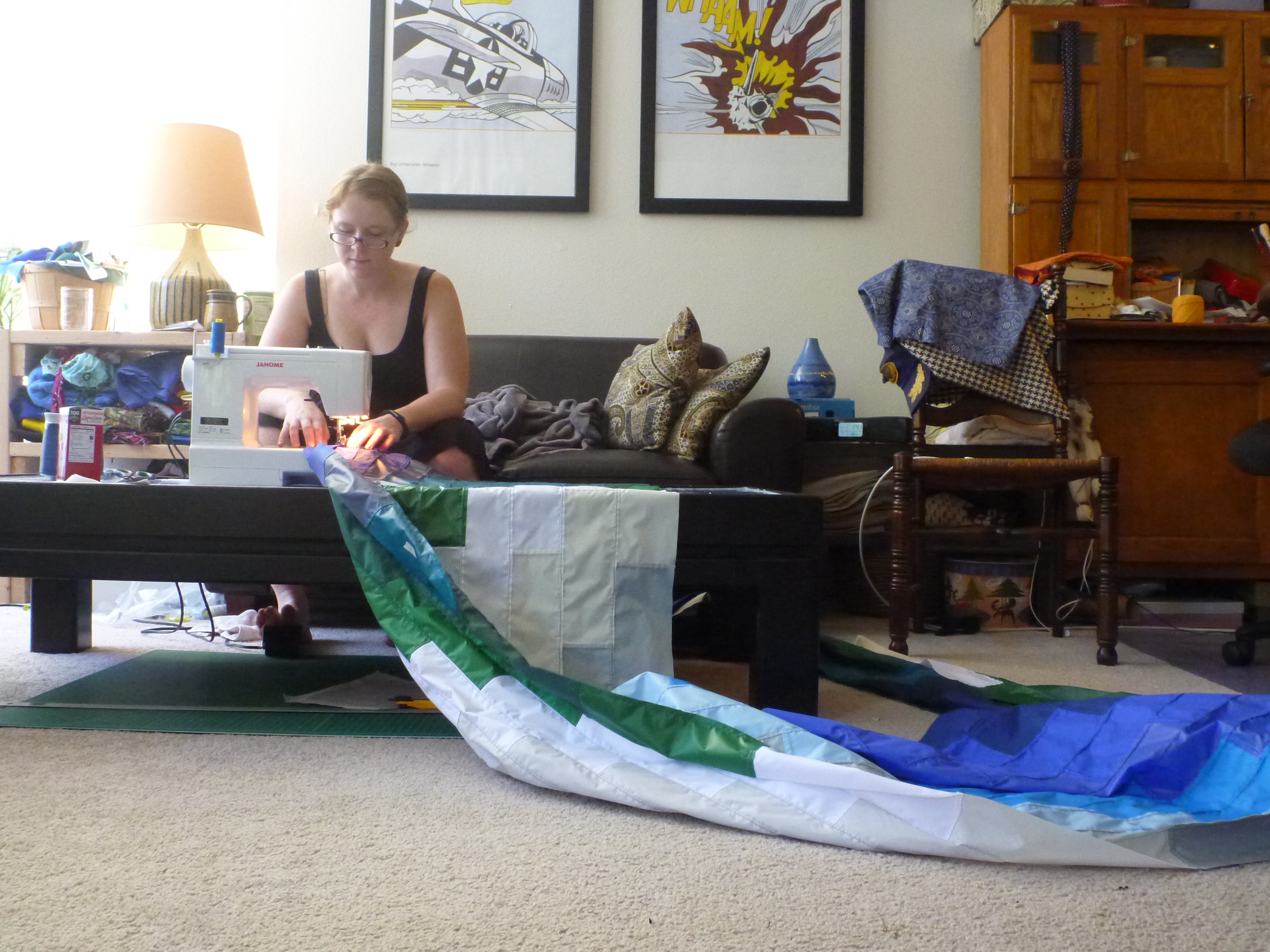 a quilted tarp the drawing board all fabric purchased first round of fabric cutting complete and the tarp takes over the apartment. construction completion. Share this: Click to share on X (Opens in new window) X Click to share on Facebook (Opens in new window) Facebook Like Loading... Related