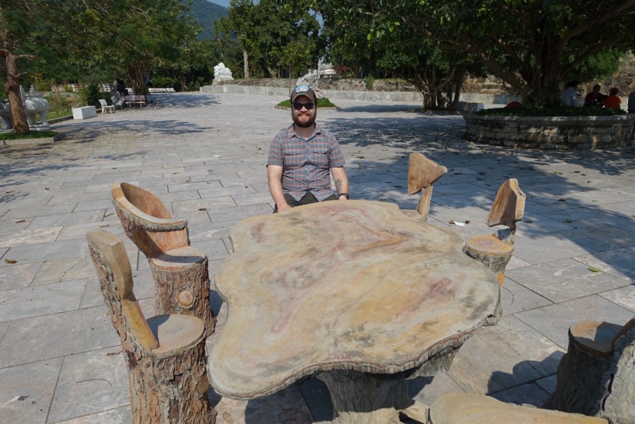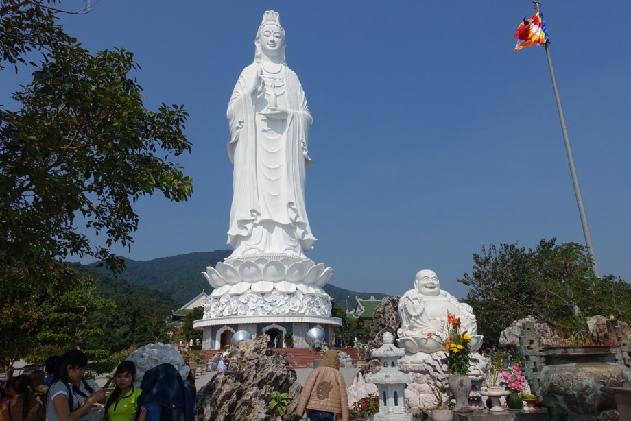 The drive to the Son Tra peninsula took us about 30 minutes and took us along Da Nang’s main beach, which was one of the longest beaches we have seen in Southeast Asia so far! After following the beach for awhile, we started going uphill toward the large statue of Lady Buddha that looks over the beaches of Da Nang. We spent some time exploring the temple area around the Lady Buddha and enjoyed seeing the Vietnamese people practicing their religion and taking lots of selfies.