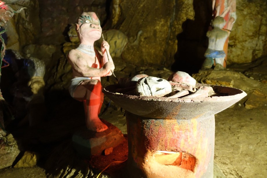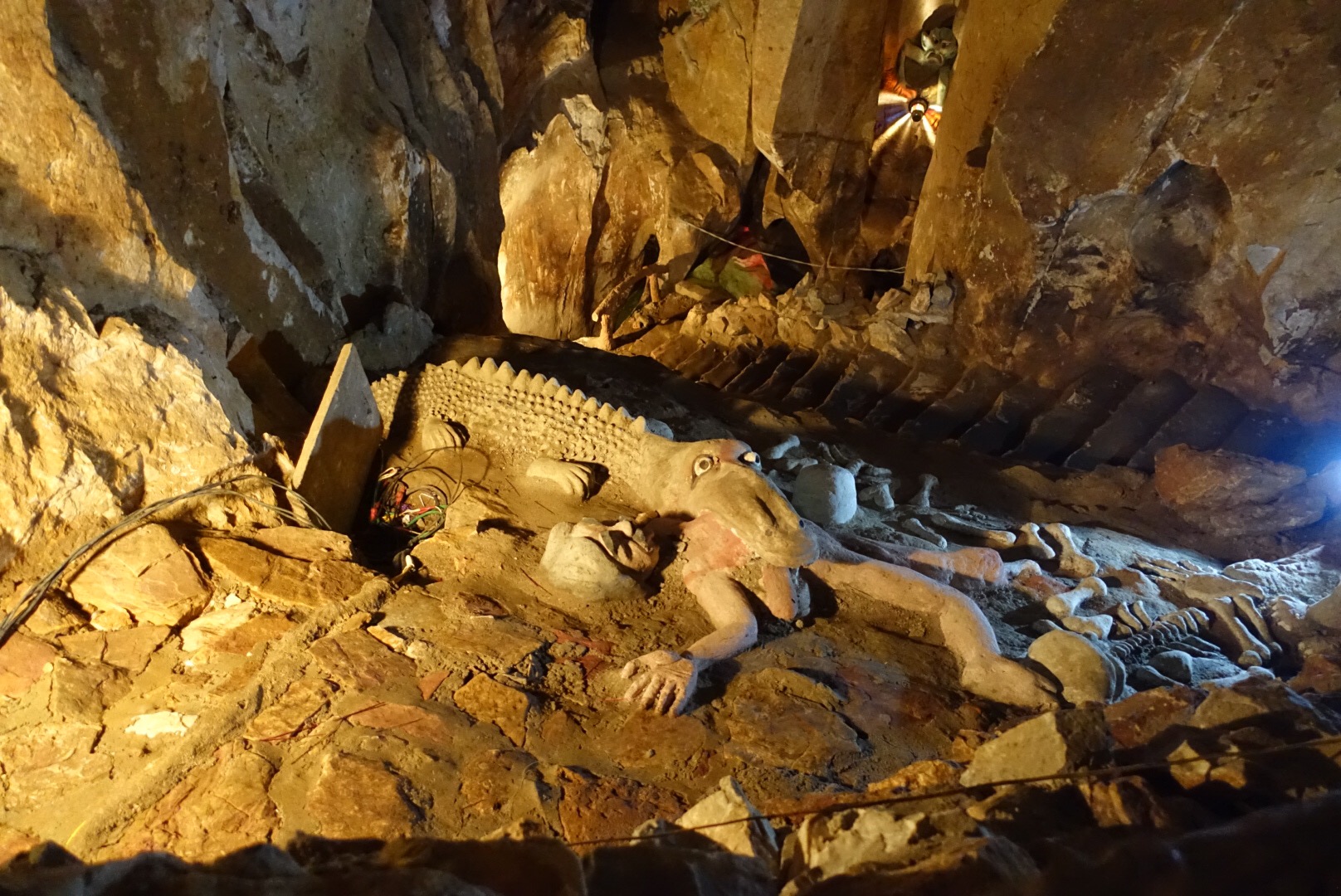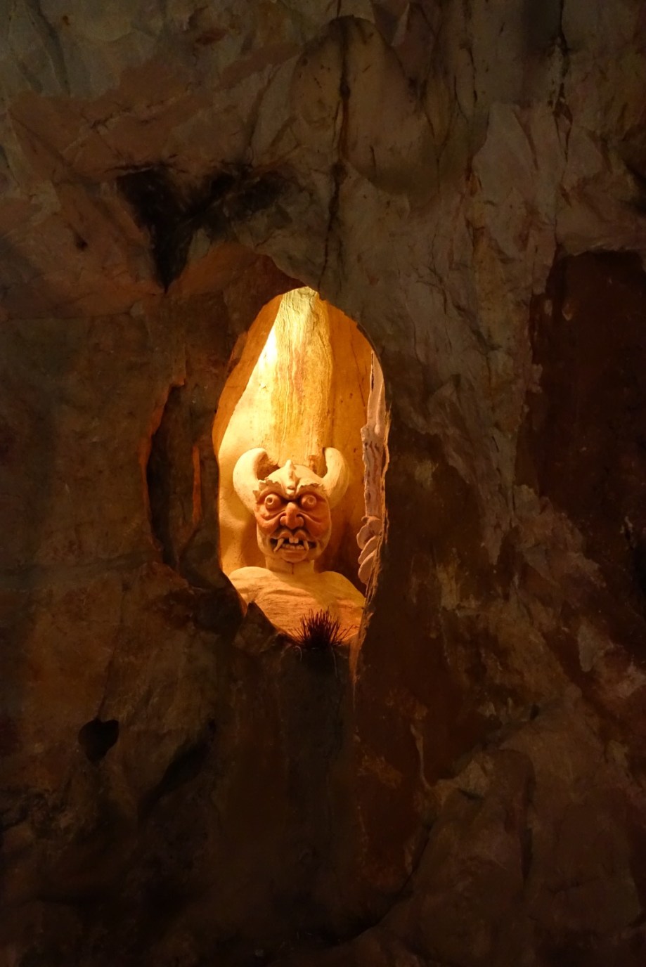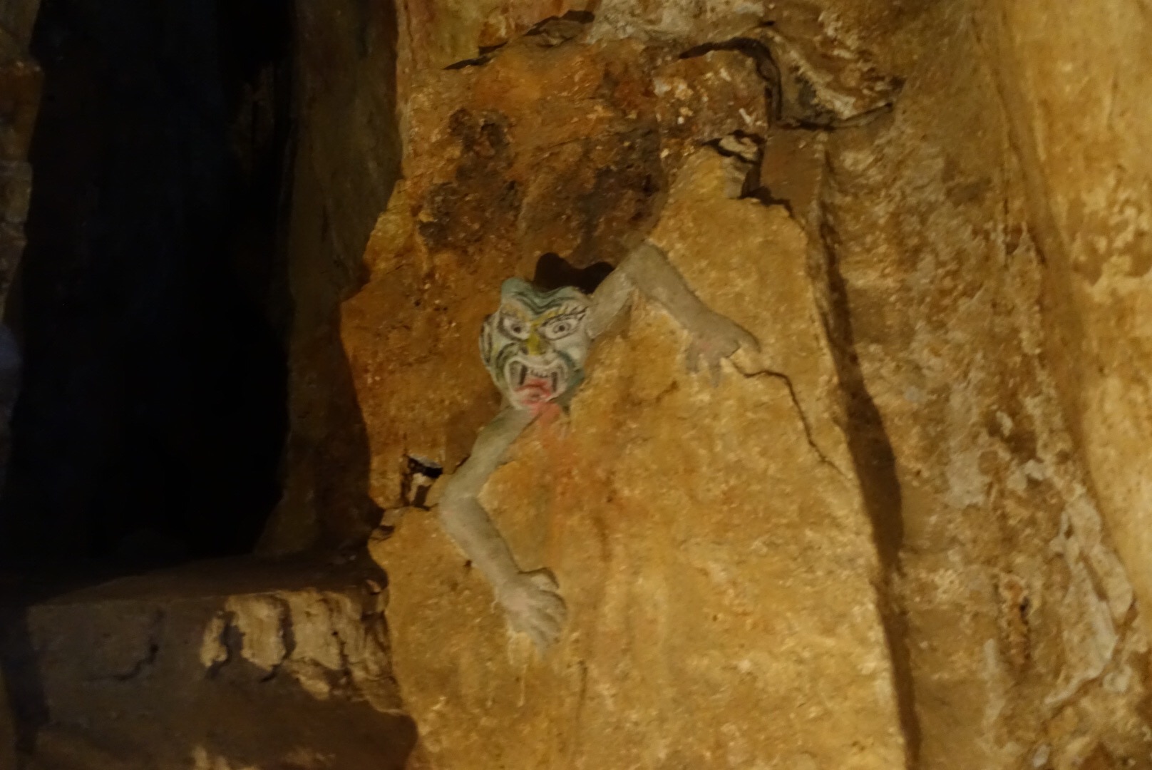 We started at the largest mountain and the first cave we went into was the best one of all – it was filled with all sorts carvings of of hellish creatures.