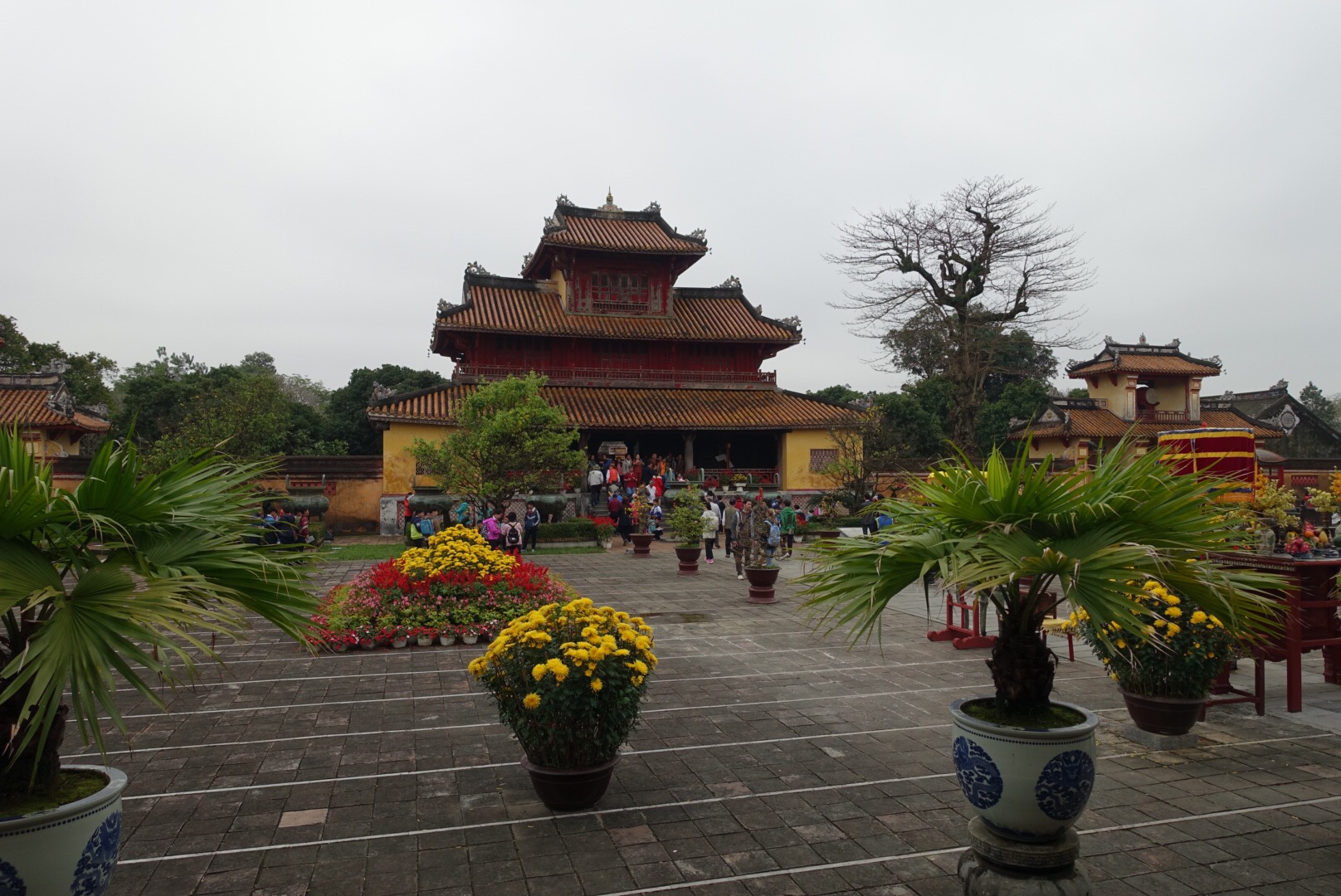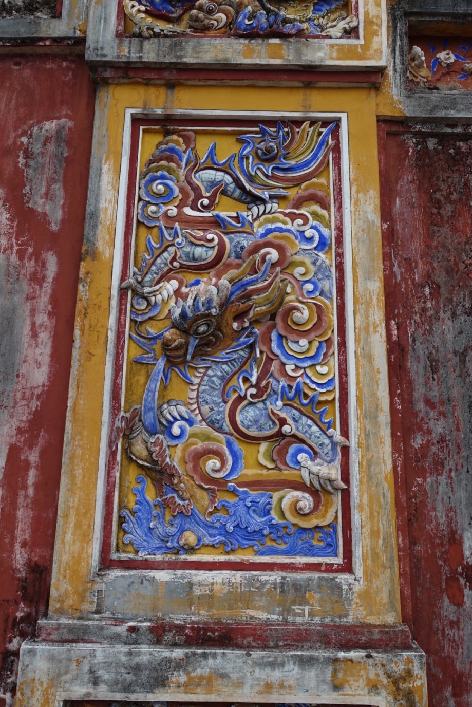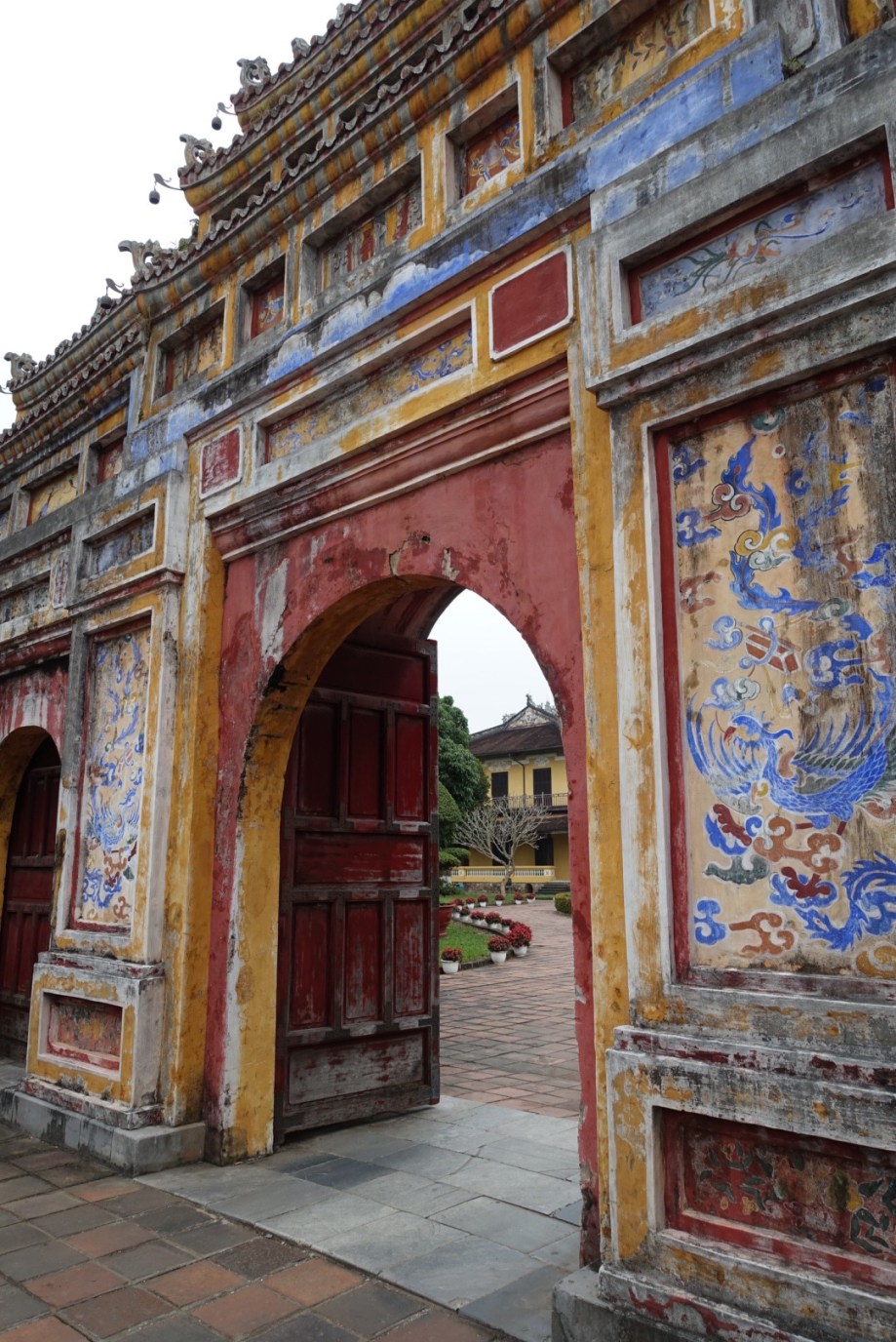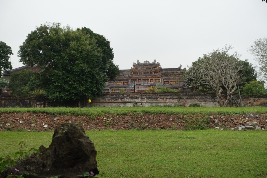 Hue was the capital of French colonial Vietnam, and a center of action during the Vietnam war. The country was divided into North and South Vietnam right around Hue, and a lot of fighting took place around the area despite attempts to avoid it to protect the historical structures. The Imperial City, built by emperors during the Nguyen dynasty, remains despite heavy war damage, and it has been (and is still being) significantly restored, so we spent some time wandering around it.