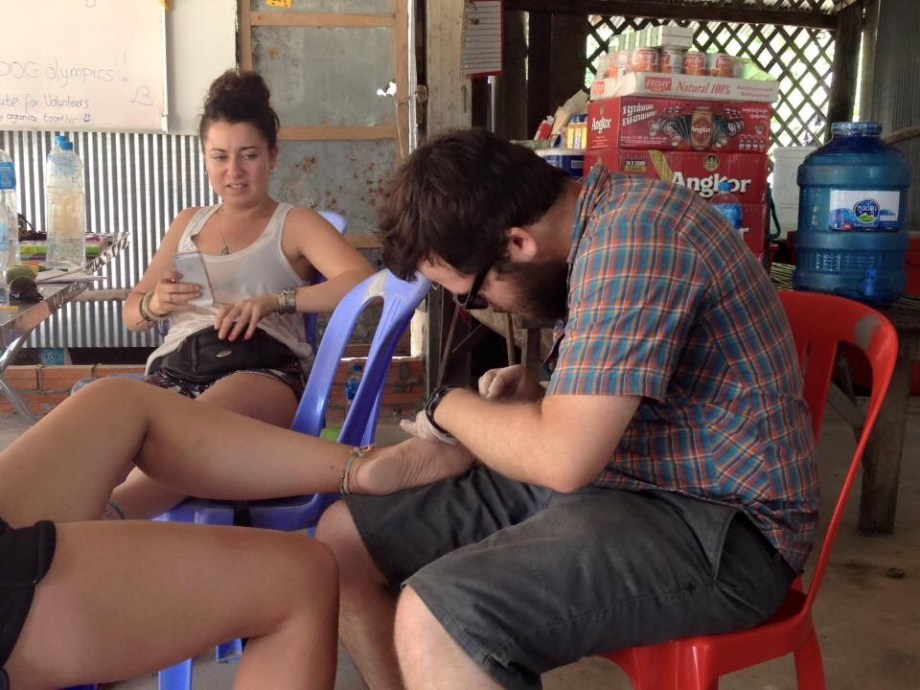 One day, Mr Kim came to Dreamland with some of the volunteers from another property, Happyland, and told us all his story and background. He also had some of the kids say their name, how long they have lived there, and what they want to be when they grow up. One of the girls said she wanted to be a doctor, and since Thom had bandaged up many feet from kids stepping on sharp objects without shoes on, we decided to have a first aid workshop. We also wanted to clean out the medicine cabinet in Mr Kim’s office, because many volunteers leave their first aid materials and medications behind thinking they are helping with a donation, but then CPOC ended up with a ton of supplies and medications they don’t have a clue how to use, so we wanted to help sort it out.