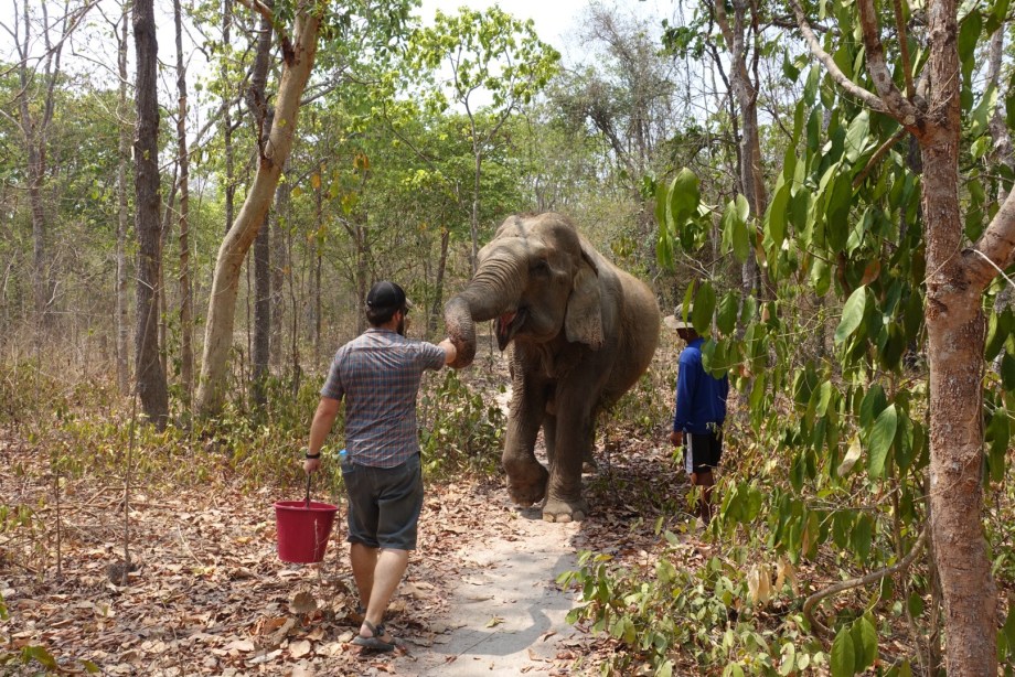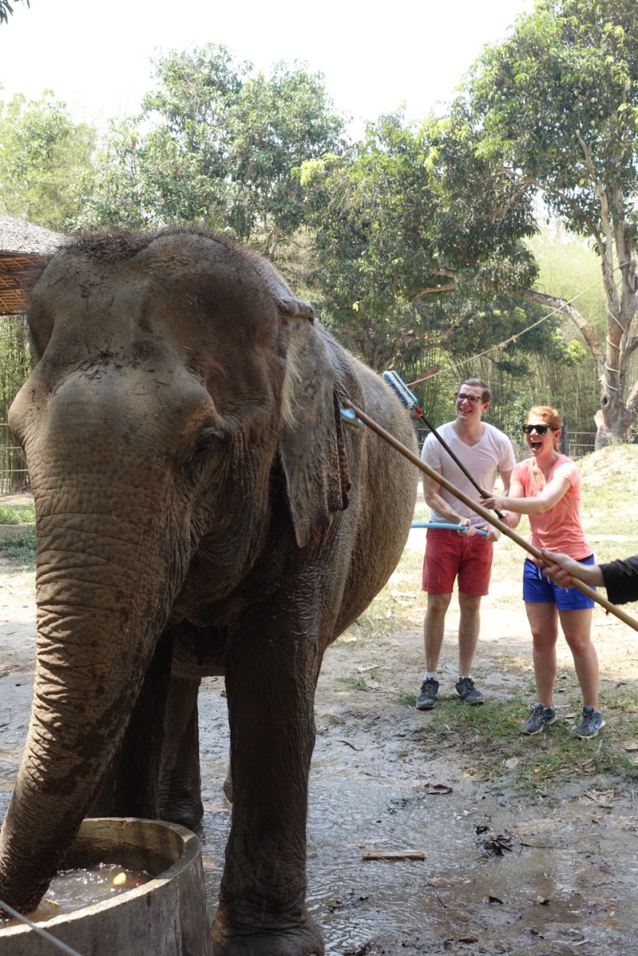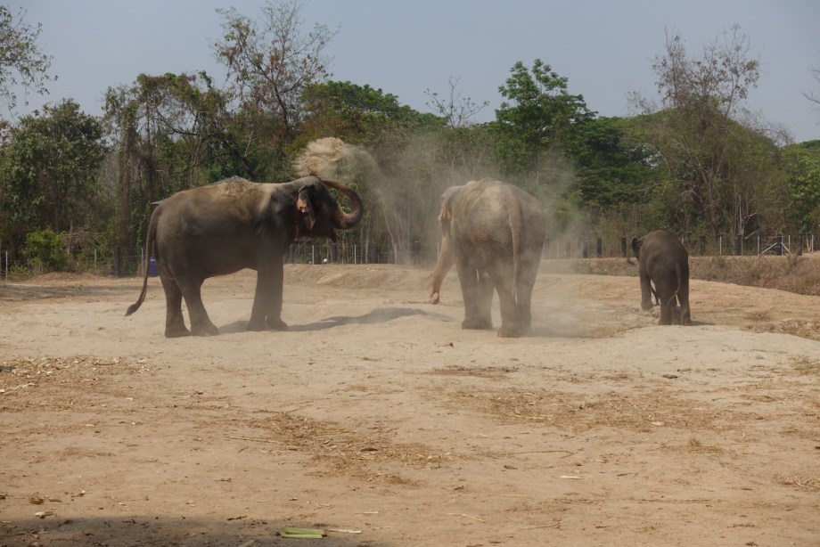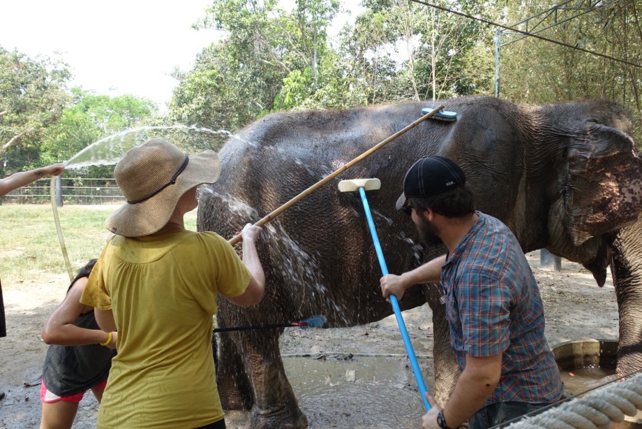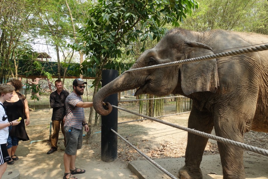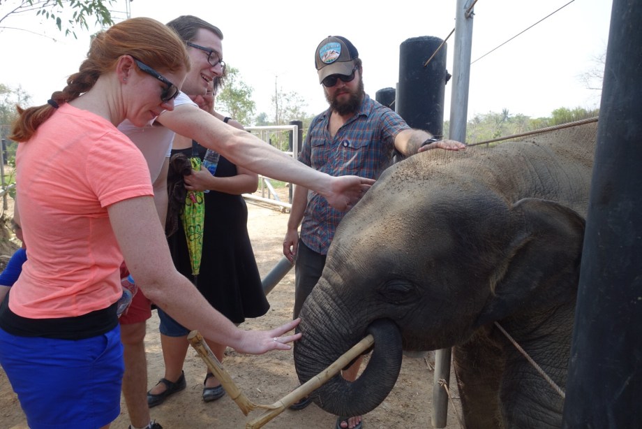 The next day was elephant day. One of the things Reeny really wanted to do while in Thailand was see some elephants, so we went to an animal foundation that does rescue work with animals, including elephants. In the morning we toured the foundation, where they keep various animals that have been rescued from terrible situations across Thailand, such as gibbons and monkeys and sun bears that have been kept as pets, and elephants that were trained to do tricks and carry heavy tourists (something elephants are actually not strong enough to do – they can only carry up to 100kg on their backs as their backs are not very strong!). We had an awesome buffet lunch of Thai food, then in the afternoon we walked, fed, and washed an elephant before touring the more expansive areas of the foundation where animals are kept before they are released to the wild. It really was a nice experience and we were glad to enjoy it with Reeny who was so excited to visit the elephants!!