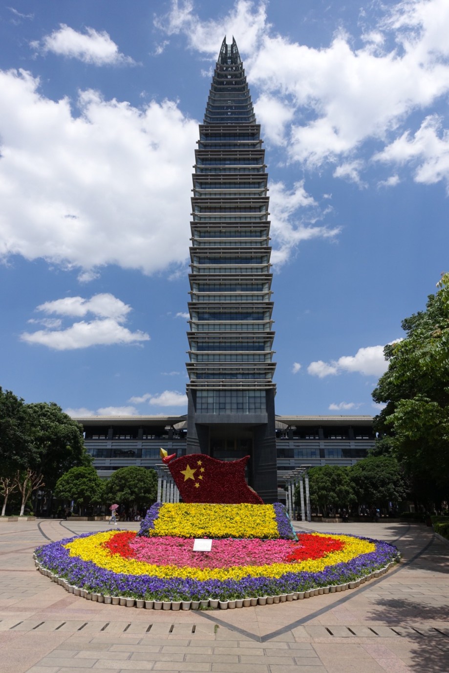 There were also a bunch of souvenirs for sale, and I bought myself a few new Chinese paintbrushes for when I get back to my pottery making 🙂 Afterwards, we wandered around the city for awhile until we got tired of walking. We found a small park with lots of older people playing chess and mahjong, and also a monument of sorts with a nice flower display.