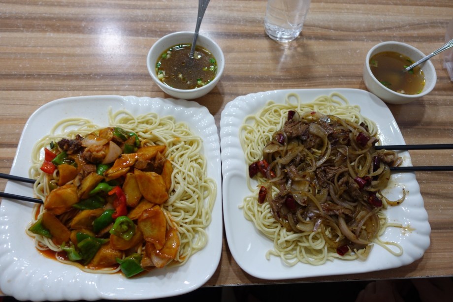 We found probably the best noodles ever at a small Muslim shop on one of the side streets by our hostel. They were making the noodles fresh to order in the front of the shop, and they were just perfect. Fresh, springy, and just amazing, topped with beef and veggies, and the one on the left also had a bunch of potatoes. The broth in the picture was also ridiculously good, spiced with some sort of Indian spices and just so flavorful, we couldn’t get enough even though it was a small free appetizer.