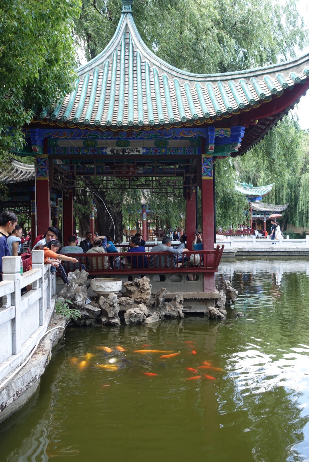 We spent out last day in Kunming wandering around Greenlake – just like our Greenlake in Seattle, it is a reasonable size to walk around and gets packed with people walking and hanging out on a nice day. In the middle there was a bunch of walkways and a fish pond, and a number of people dancing and having a good time.