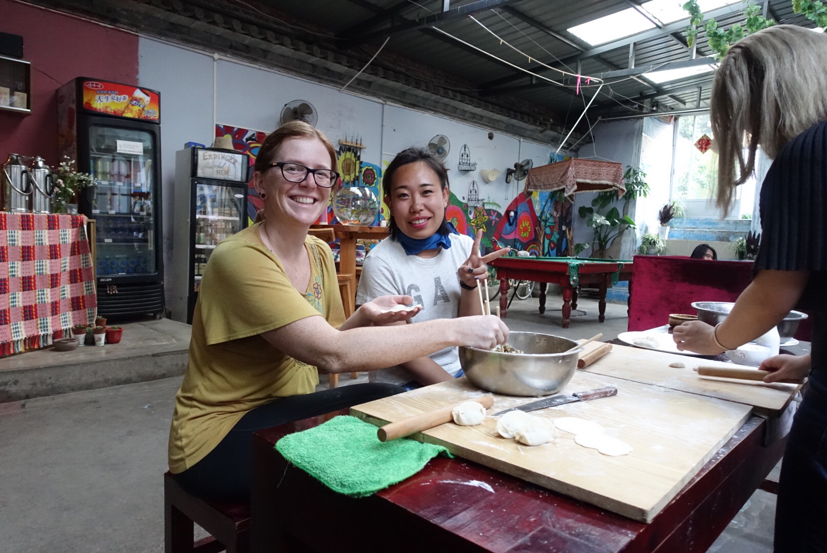 In the evening, we participated in a short dumpling class offered by our hostel. They prepared the dough and stuffing ahead of time, so all we really had to do was roll and stuff the dumplings, and even though we know how to do this part and really just wanted to learn the recipe to make our own at home, we still had a good time.