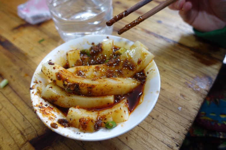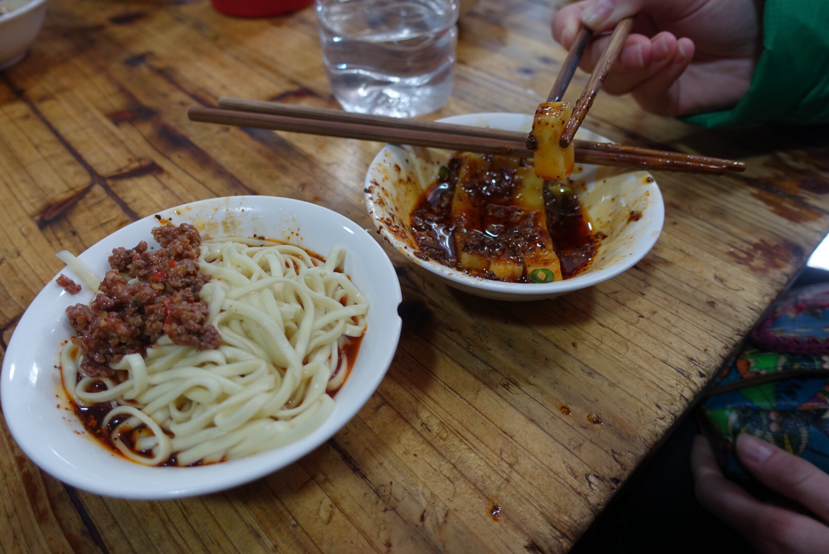 After the tour, our tour guide Damon took us to a place nearby for Sichuan lunch. We had mung bean jelly with spicy sauce, and noodles with meat and spicy sauce. They were both delicious, especially the mung bean jelly, and not quite as spicy as they look!