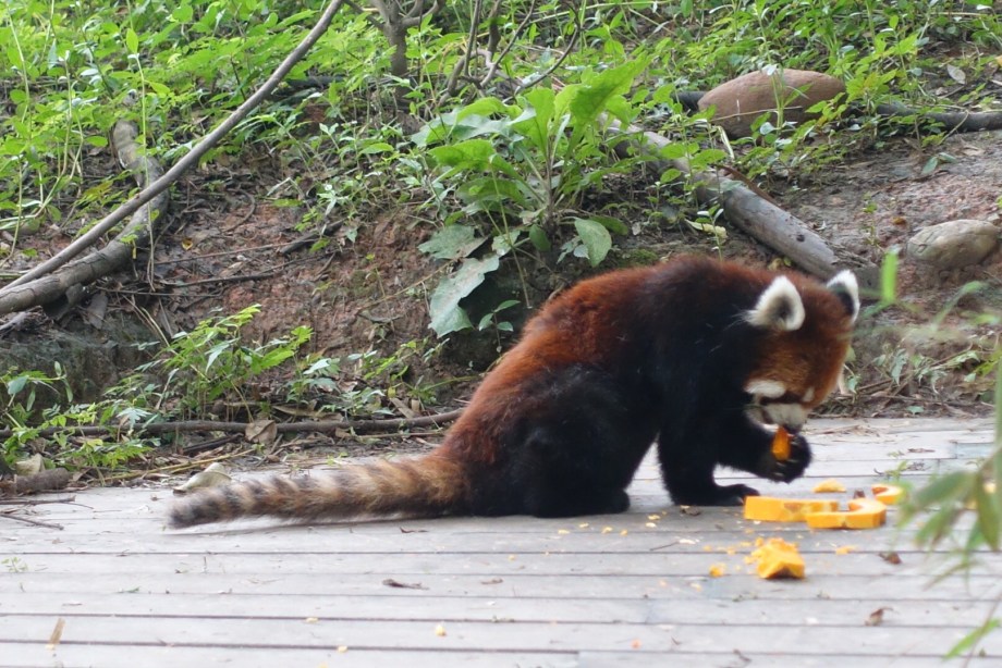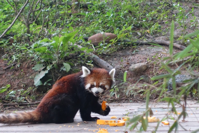 The red pandas were much more mobile and even walked right next to us on the path on their way to get their food.