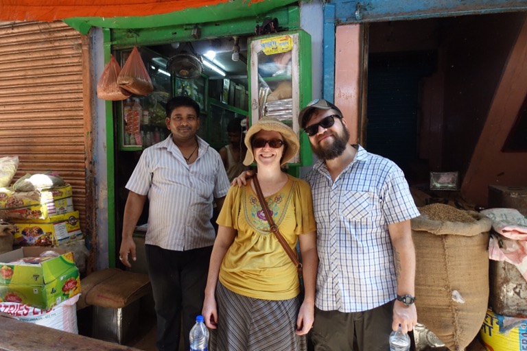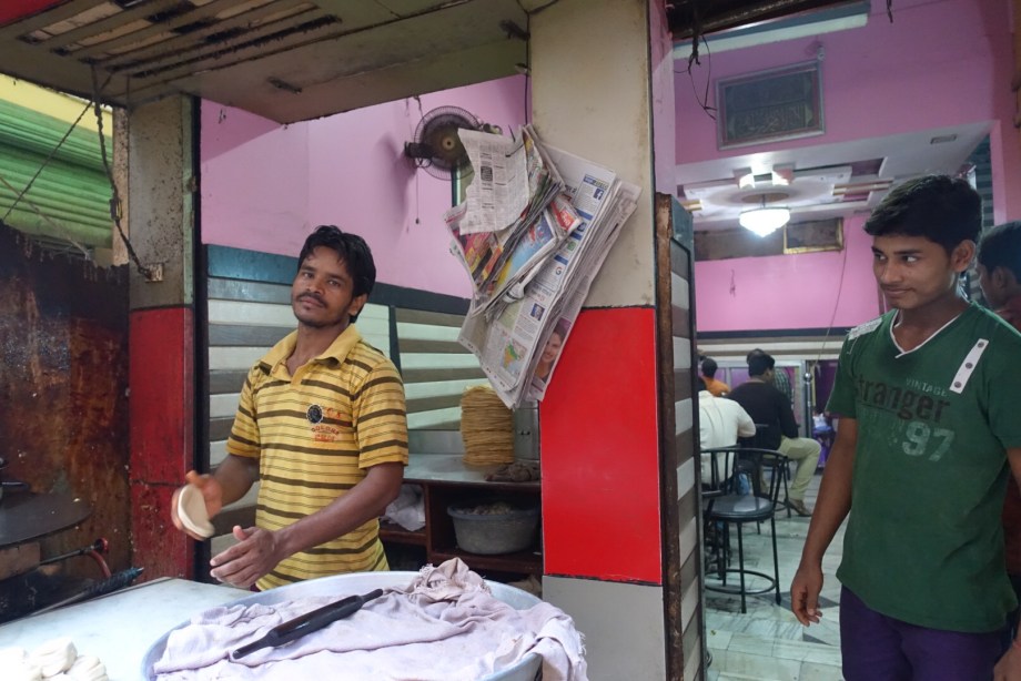 Next we went to a Muslim meat shop with yummy spicy chicken legs. Most of the meat we have found in India seems to be served at Muslim-run shops, because devout Hindi people don’t eat meat.