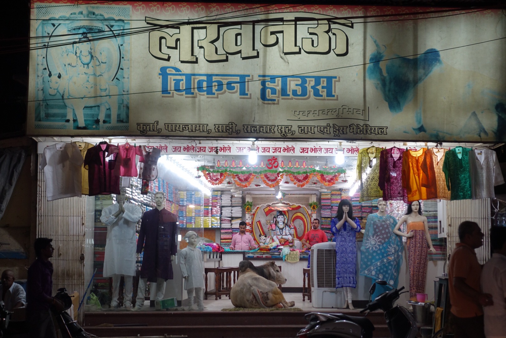 While waiting for our paan, we saw a cow chilling in this dress shop.