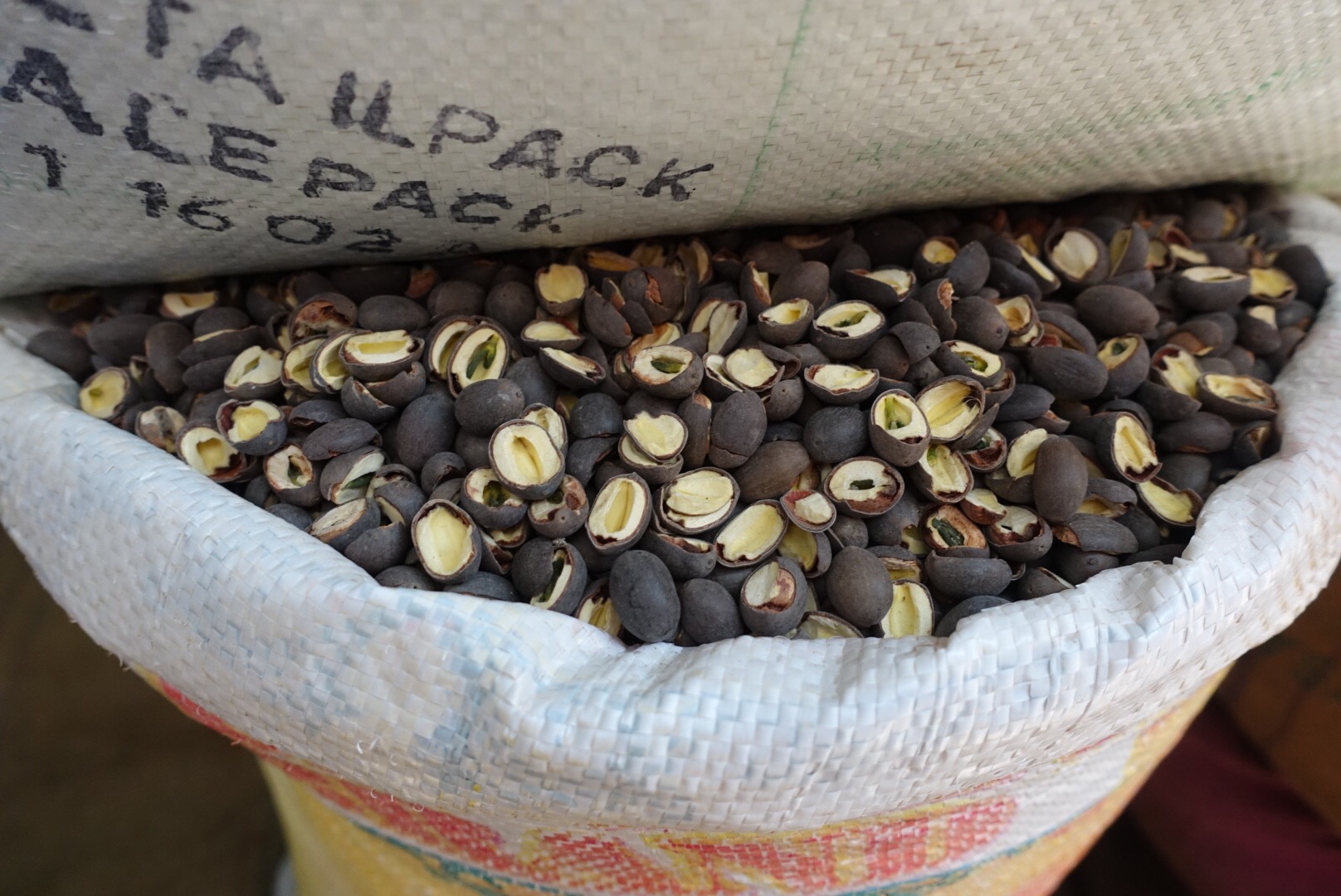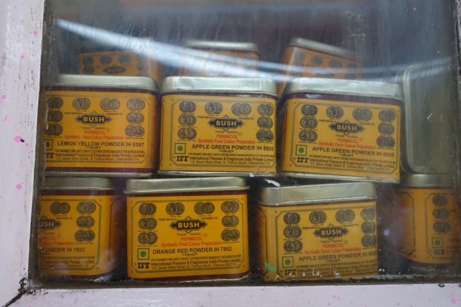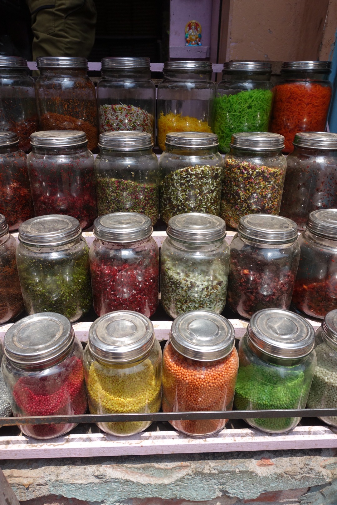 The first market was the paan wholesale market, where the paan sellers get their supplies. First we saw the candies and spices in the sweet paan.