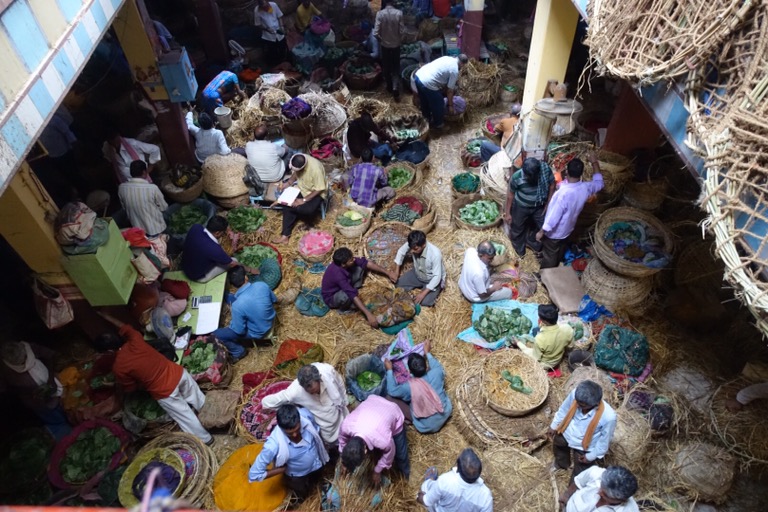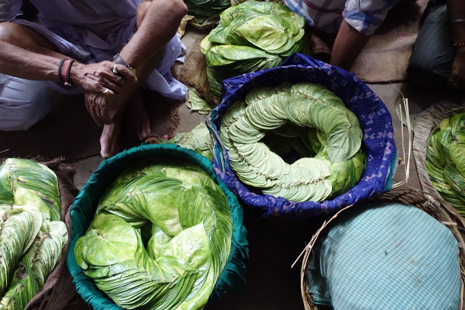 Then we went into a relatively quiet building and were surprised to see a huge market of guys selling the betel leaves. They are arranged and classified by quality, and sold in baskets of 1000 wrapped in damp cloths to keep them fresh. Very interesting to see.
